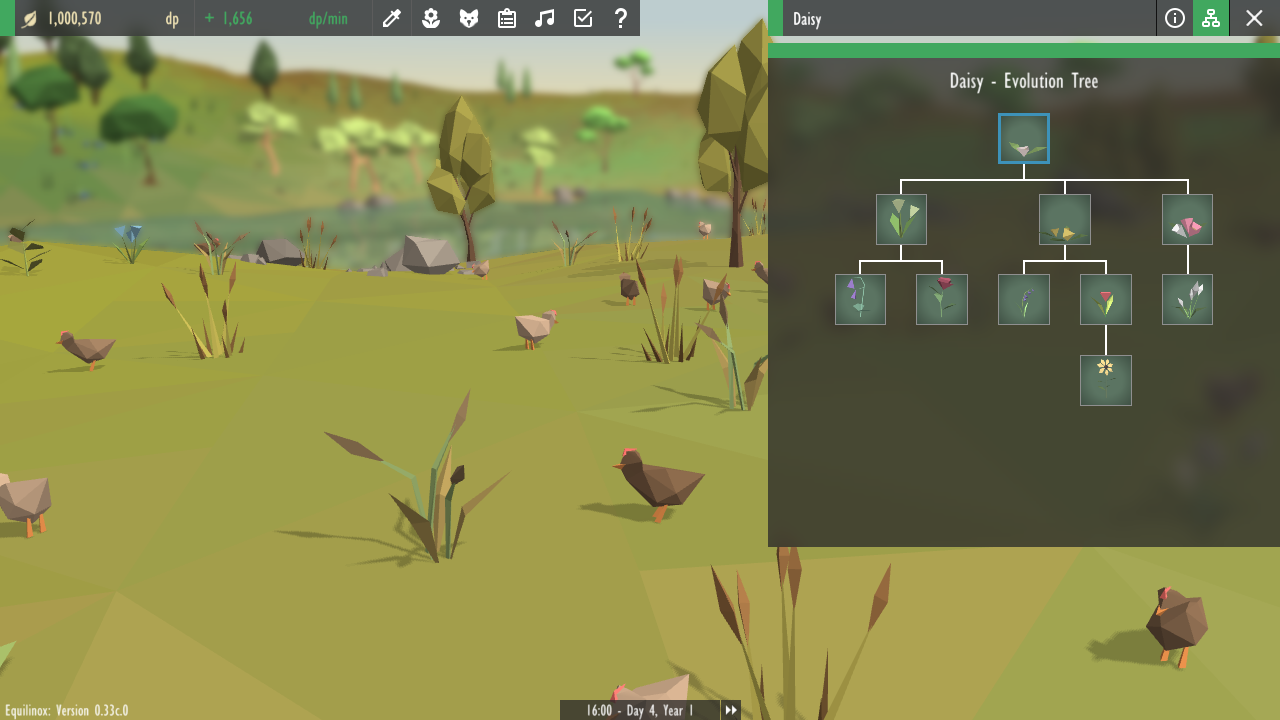 Equilinox is a relaxing nature simulation game which allows you to create and nurture your own living ecosystems. You can think of it like a city-builder game, but instead of cities you build and manage ecosystems! To create an ecosystem you place plants and animals into the world, each of which has its own life-cycle, behaviour, and requirements so you need to make sure each species has a decent habitat with sufficient resources. Having healthy, happy animals in your world will earn you points, which can be spent on buying more wildlife for your world. You can also use these points to genetically modify your current species and evolve them to unlock more exotic plants and animals.